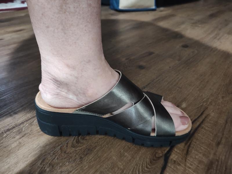 I have had both knees replaced and was afraid that the wedge would be too much to walk in. It is a comfortable sandal n I love it!
