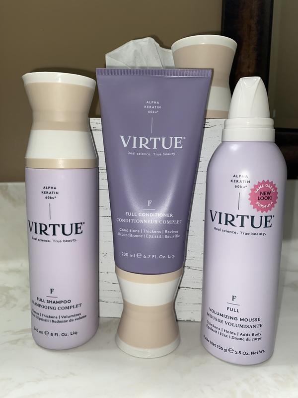 Love the Virtue Full Conditioner so far! This product softens my fine hair but doesn’t weigh it down.