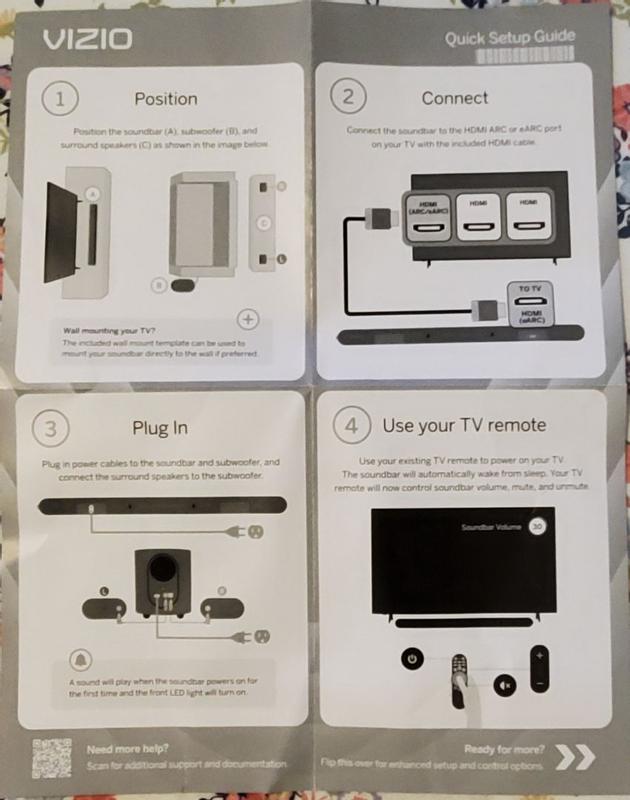 I love the VIZIO set up to the Dolby, Atmos and Dolby Vision and the satellite speakers on the sound bar along with the quick fit connection where the sound bar just slides under the TV