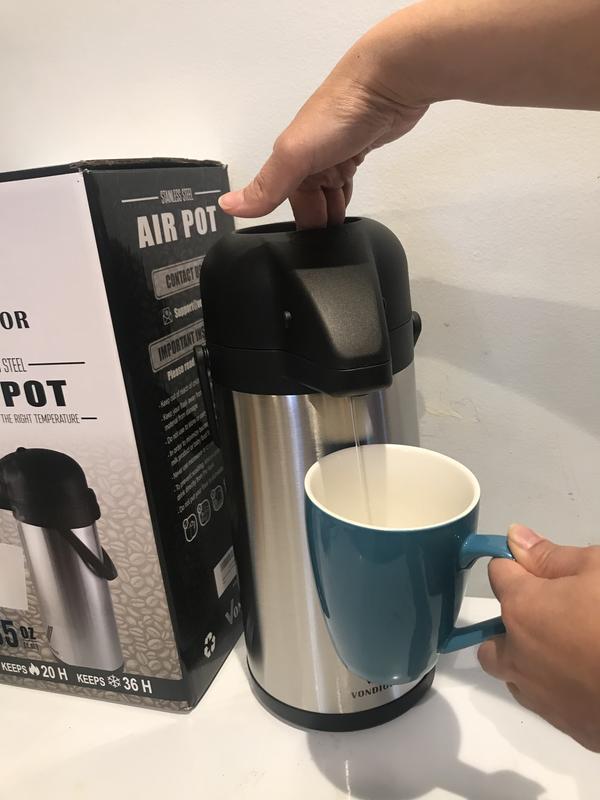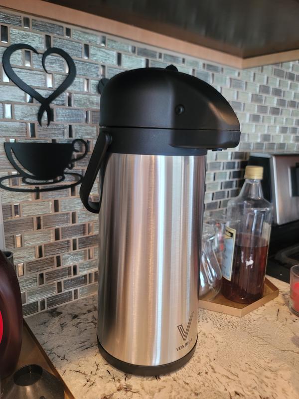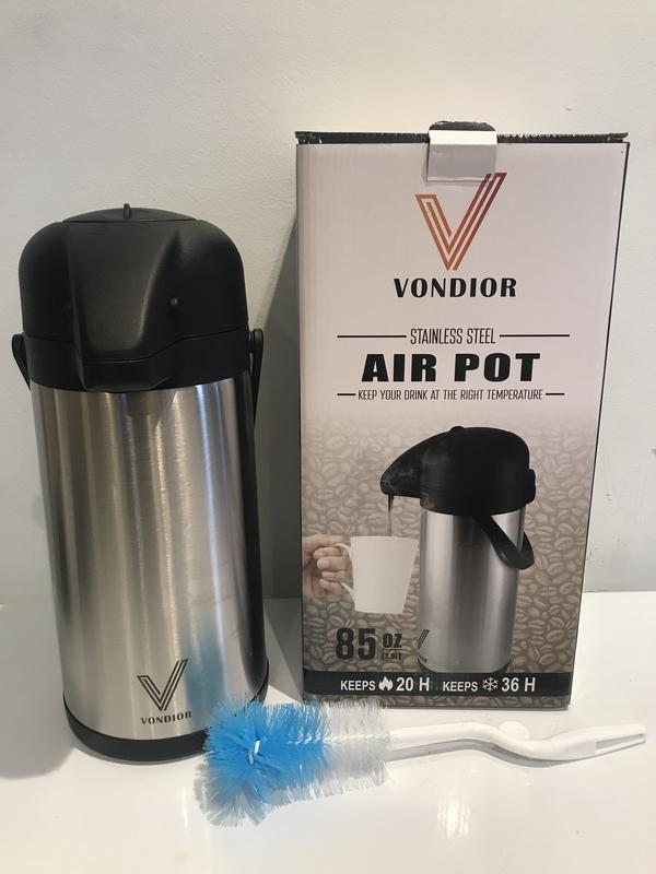 I recently bought Vondior Cofffee Carafe Dispenser from Macy's online shopping app. Totally satisfied for its 102 Oz quantity, ~20 hours of heat retentions (tested it twice - its still drinkable hotbut has reductionin temperature), and its ease of operations. Idea is to use it for hosting parties, home office work, long road trips for family, and based on my recent use and thorough testing it lived up to my expectations. Good product that should serve the purpose when needed.