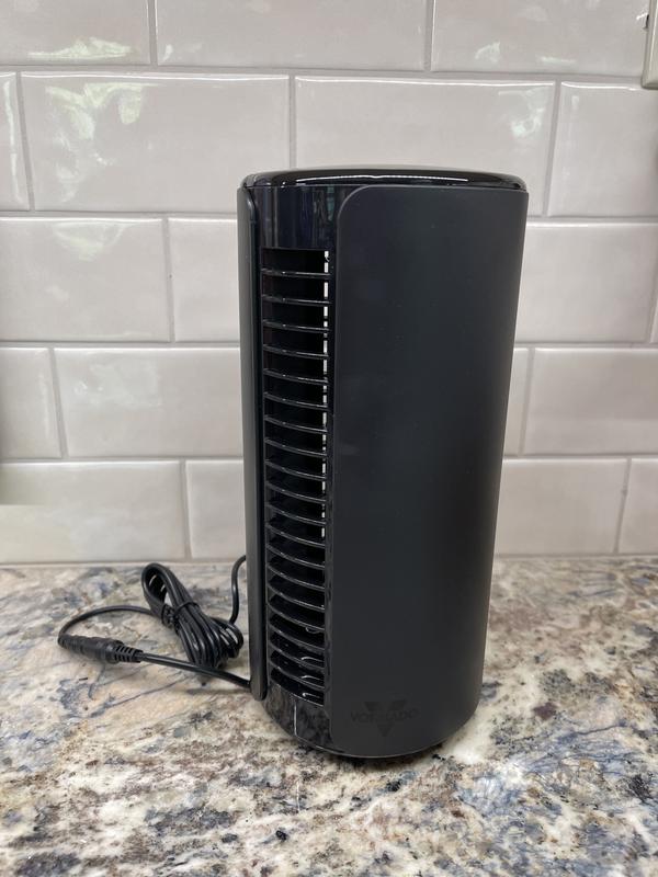 Thought this would be great for the desk. Few issues with this. 1. The section where the air comes back shoots only one way, so the majority of the fan has zero air flow at all. Nada, nothing so you have to just hope the breeze comes back soon, which is part of the next issue 2. the control for the oscillating is terrible. There is no 360, no matter what I tried it went most of the way and stopped, not stopped and went back, just stopped, no more turning at all. If i had it pointing at me and just wanted a partial circle from that spot it would spin all the way around and go the other direction, again tried many times to fiddle and no luck 3. Oscillating itself is not good. It stops then starts again as if it had its own mind. All in all, I would take one with better controls and a wider airflow over this anytime. I probably will never take it back, so I will just keep trying to use it until it ends up in the garage forever.