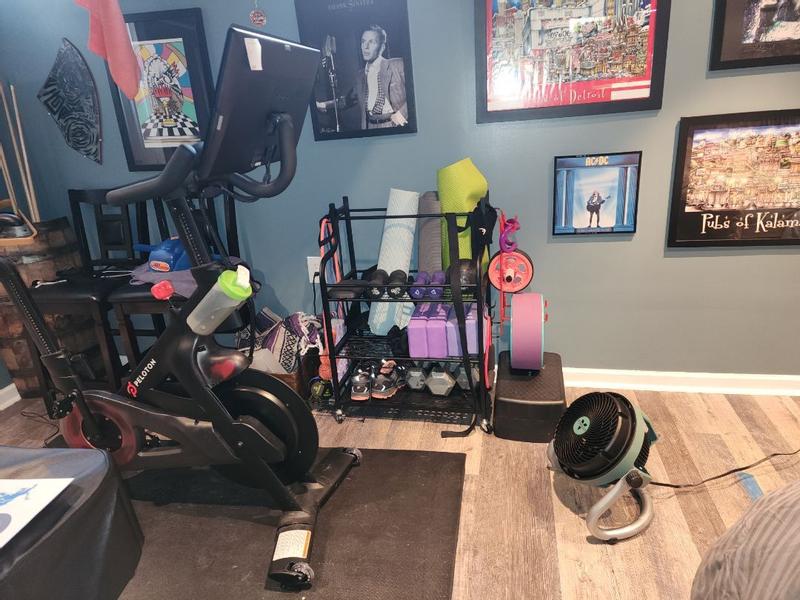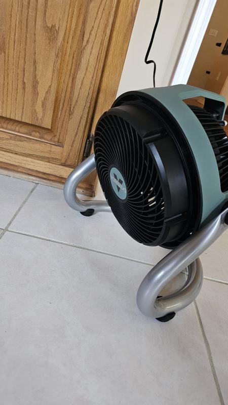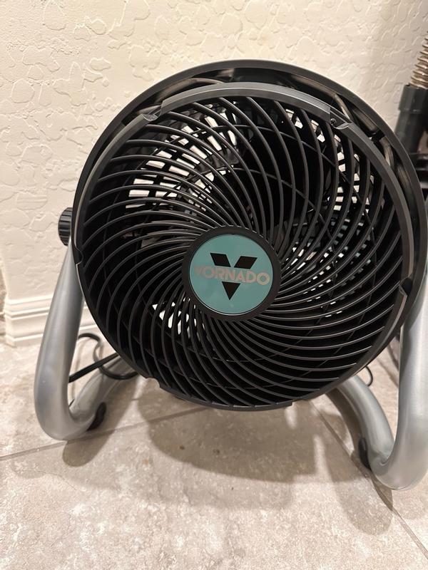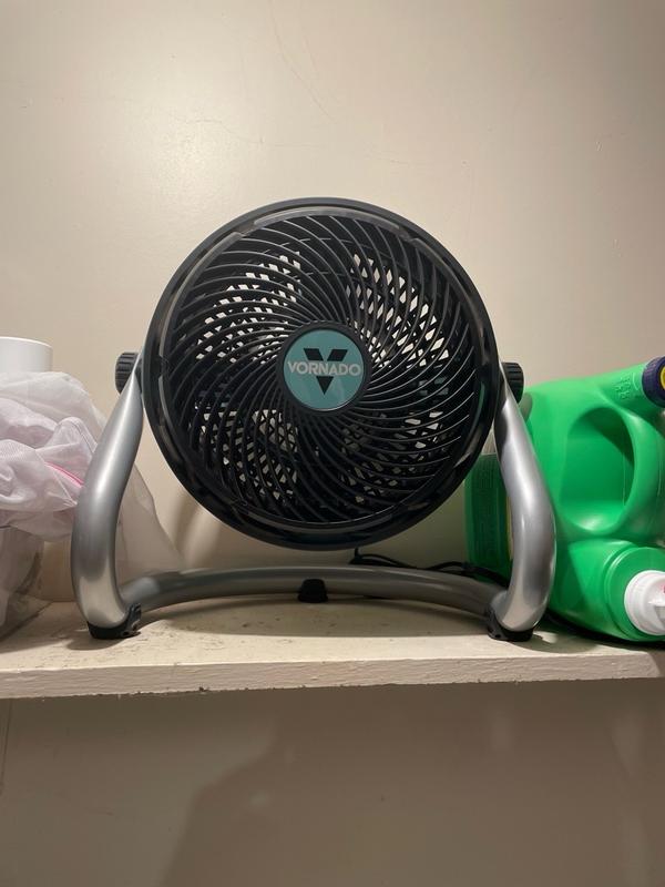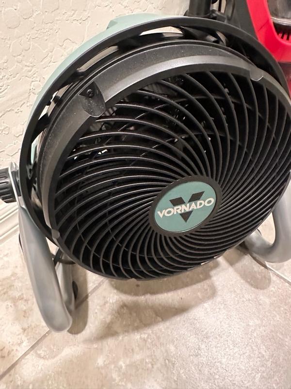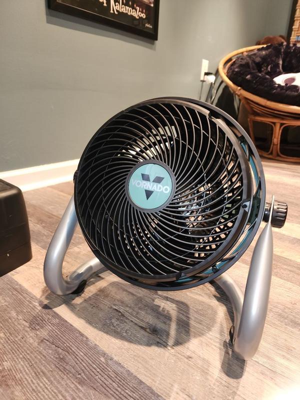 The Vornado Heavy Duty Fan pushes out the air just as promised. Our air conditioner died and we are using fans to keep the flow of air going throughout the house. This fan has does its job even on low speed. We like the ability to tilt the fan in any direction, which is necessary if we want to point it downward.