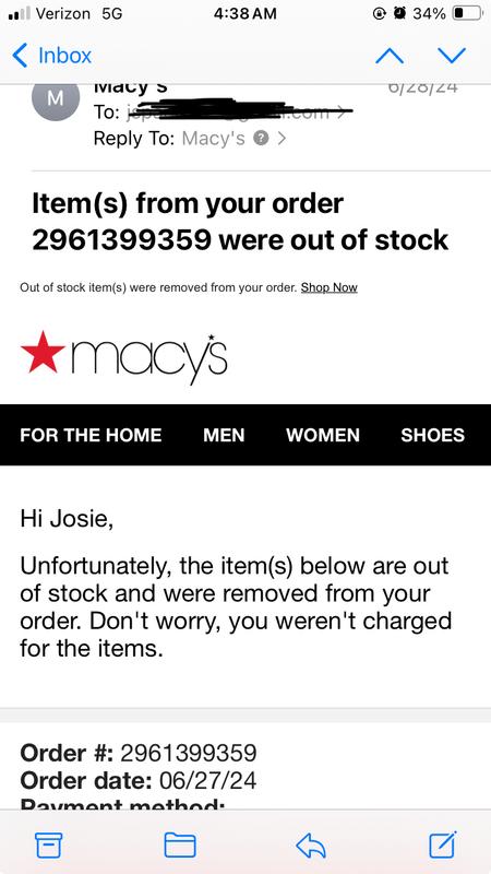 I ordered these items plus several more on June 27th, 2024 via Macy's online shopping website. My order nos are 2961399656 and 2960859686. On June 28th, 2024 I received a reply email from Macy;s that all of these items were out of stock and therefore my orders were cancelled. However, I found out that Macy's had lied. Al of these items were in stock and ready to ship, however due to a pricing error on Macy;s website, they decided to cancel my orders. They did not want to honor the advertised price that I bought them at and instead they cited there was a glitch in their website. I called their customer service to resolve this issue and they were of no help. It is so disappointing that one of the last major retailers in USA has lowered their customer service standards to such a point that they don't even acknowledge their mistakes nor do they take responsibility for it,