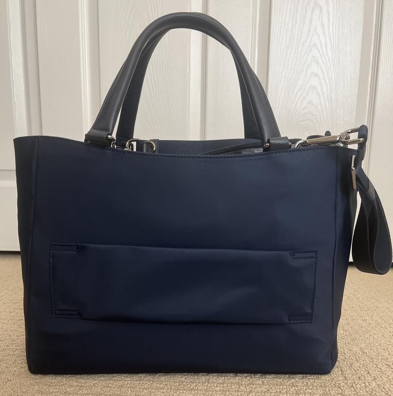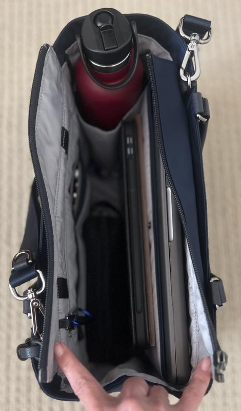 I had a Tumi business purse for years but wanted a new one and this purse is amazing. Very organized and room for a water bottle. Love this bag!!