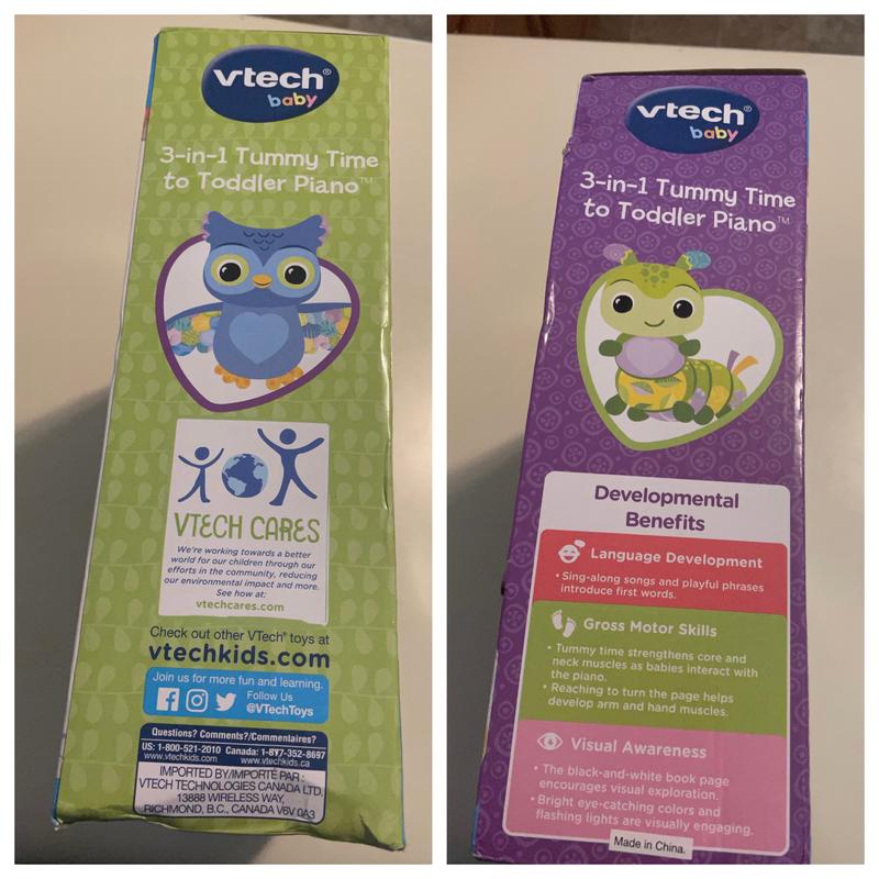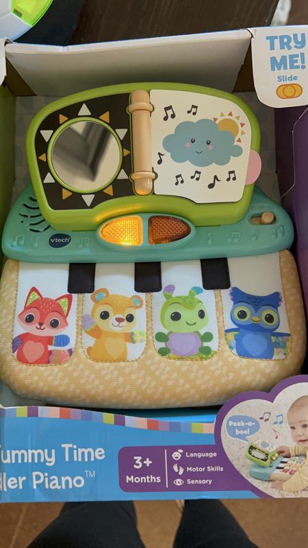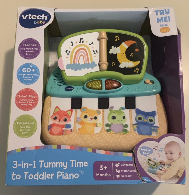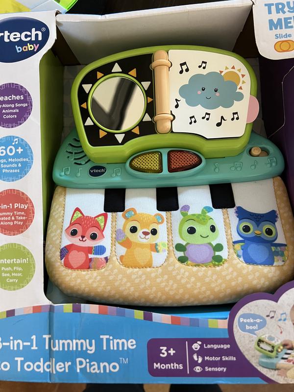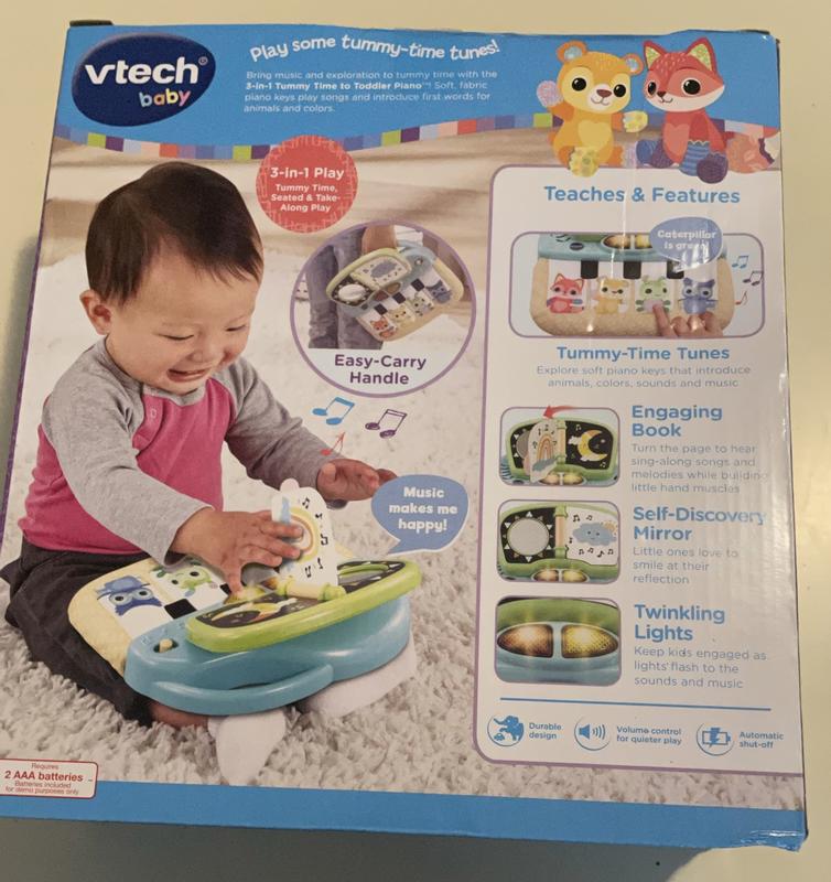 The VTech 3-in-1 tummy time to toddler piano is just that! It works for infants and toddlers alike! It has kept our little one stimulated while on tummy time. It is soft and interactive. Our toddler loves it just as much! It's music and even has a handle for on the go! Overall, our household would give it a 10/10!