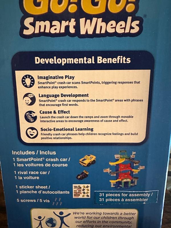 OMGosh what a fun toy! The car & truck just a enough larger than hot wheels are a great size for our 3yo, grand toddler's hands! She loves how fast they go swirling and cris-crossing down the ramps! The truck lights up while a race announcer talks and then revs up the motor! So very cool. We got it for her birthday and now we're going to get one for our house for both our 3 & 4 yo grands to play with.