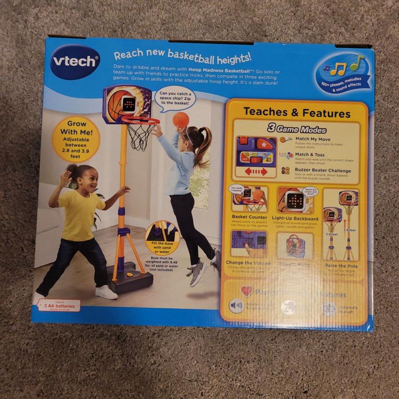 My brother loves this basketball hoop from VTech. He plays with this basketball hoop every day since his birthday. He said he is learning new things as well. I highly recommend.