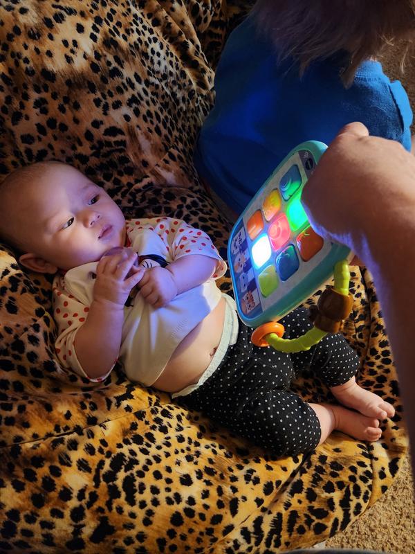 I received this squishy lights learning tablet a few weeks ago to use as entertainment for my baby nephew when he is with me. He loves it! The toy is so cute and engaging. I have always been a big fan of vtech. They don't disappoint!