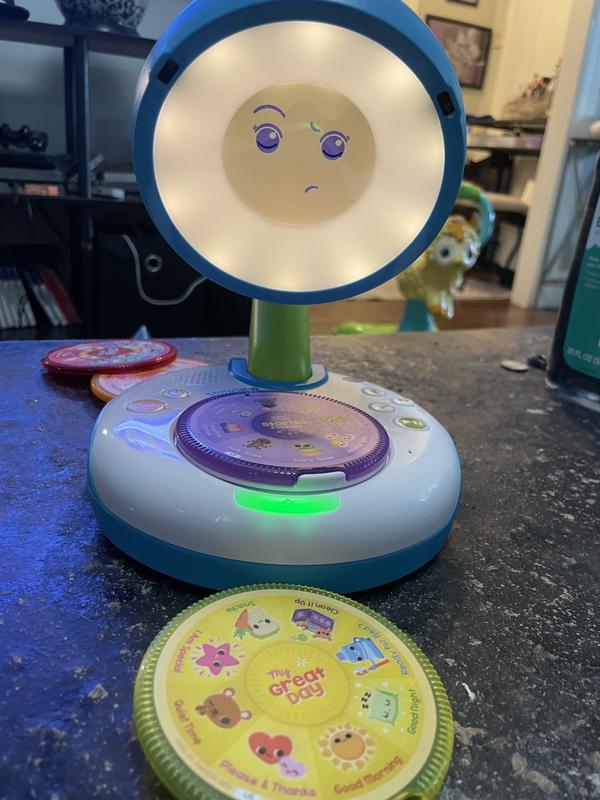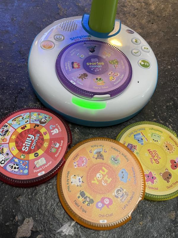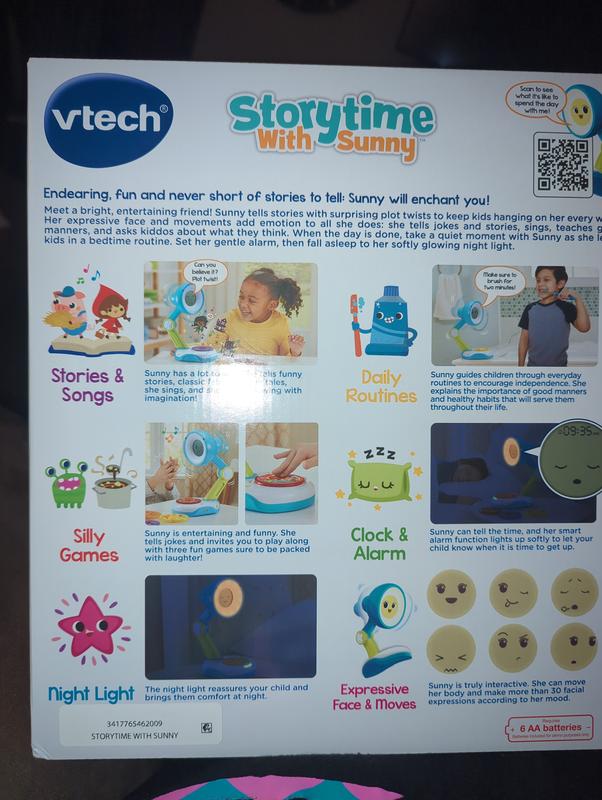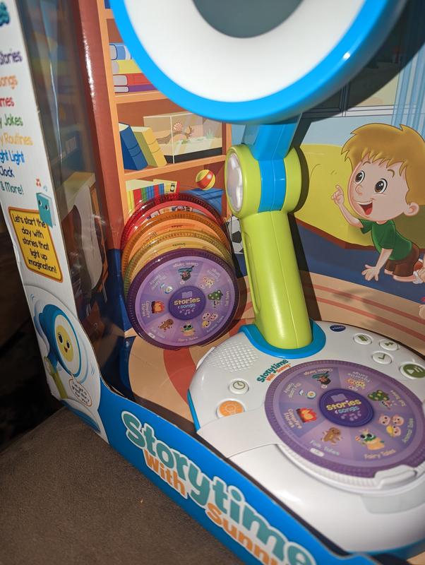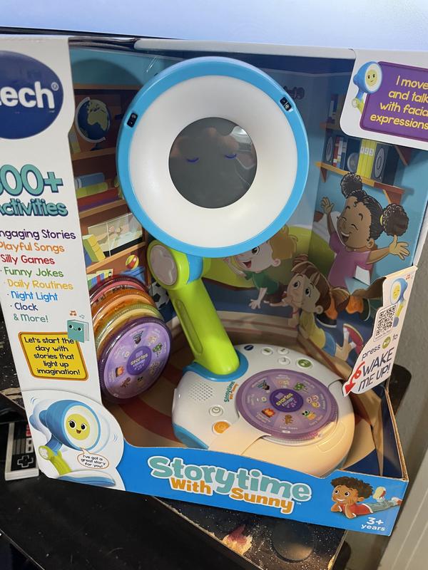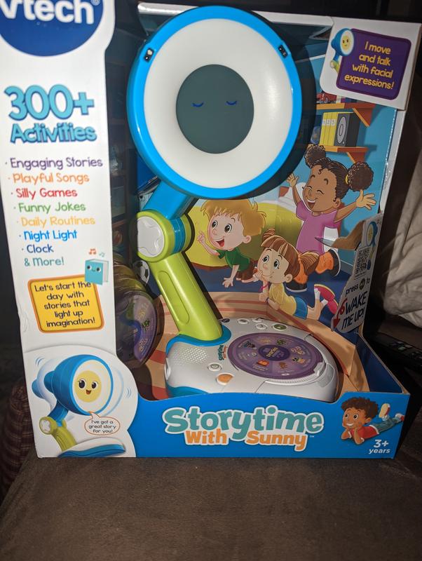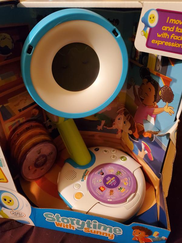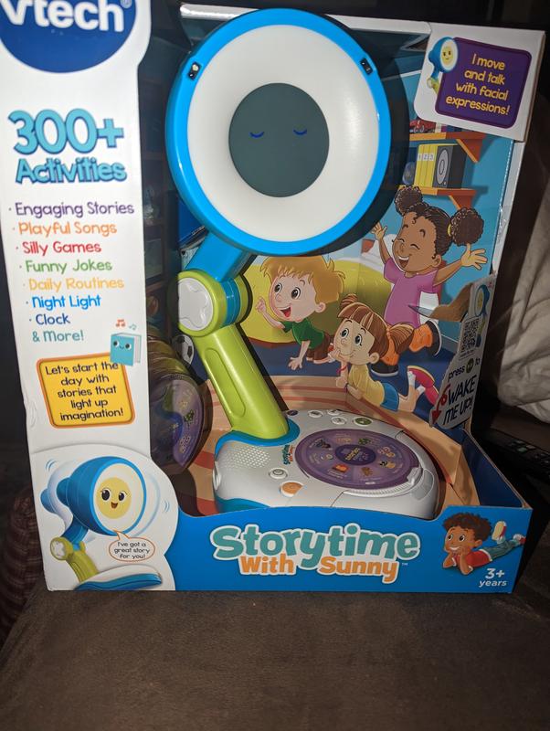 my 3 year old is having a lot of fun going through the different disks "Sunny" comes with! her favorite was the game one, now it's the song one. The story one is interesting for me to listen to, but not for her yet. this is a clever toy from V-tech and seems to be a friend for toddlers to play with. it does many different voices which is fun, and it's also kind of cool that "Sunny" is a light. OH! the batteries don't die quickly with the save battery mode on which stops the movement which is a huge bonus.
