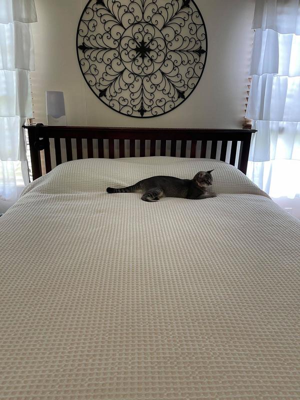 I use this little waffle blanket to add an extra layer in the winter time. Its not super thick, but it adds the perfect extra warmth for the winter. I love it and so glad I got it. Definitely would recommend.