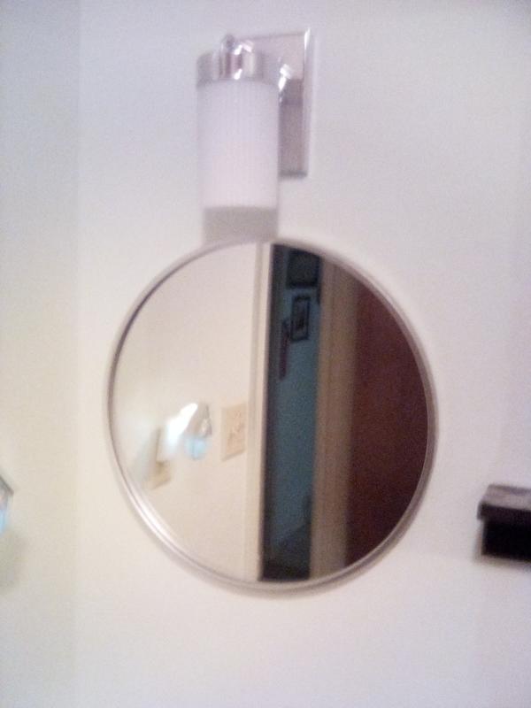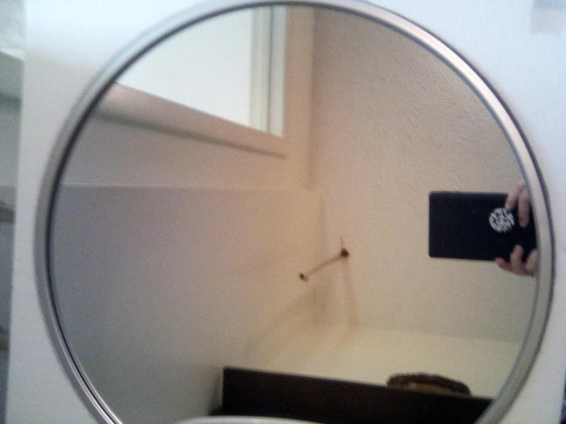I received this mirror and I was going to use it on the bathroom wall but instead decided to use it in my room on the back side of my door. The mirror looks so cute and is very functional. The mirror is very sturdy and looks great! I am so happy that I got it.