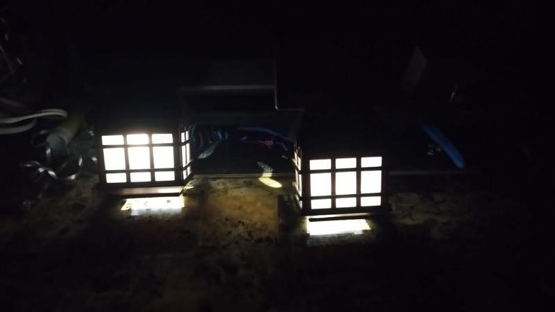 These little things are bright at night. The design looks like little huts. I love it. Installation is a breeze with the size between holes to mount them. Weather resistance is minimal. There are gaps on to let water through.