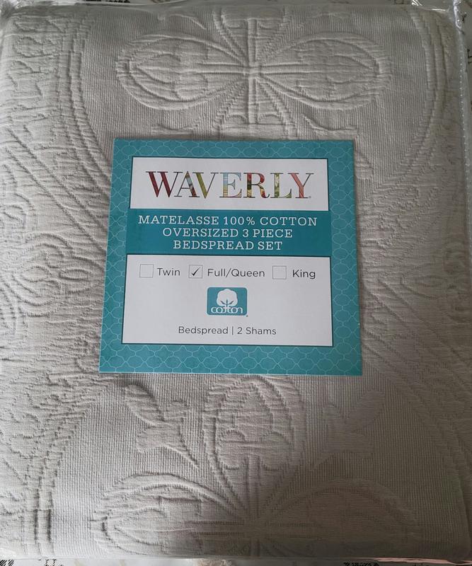 My Review for Waverly Matelasse Queen bed set is that the style is very modern/farm style. The quilt feels very durable and great quality. I habe washed it 2 times this month and so far i dont see any loose ends or tears. I like how the material did.not shrink or wrinkle super fast.