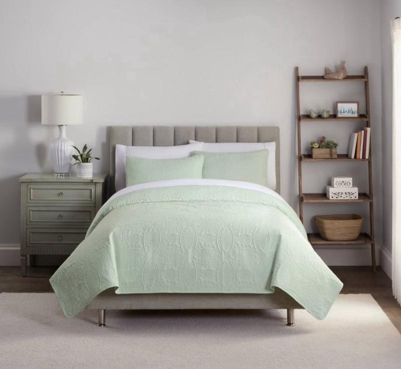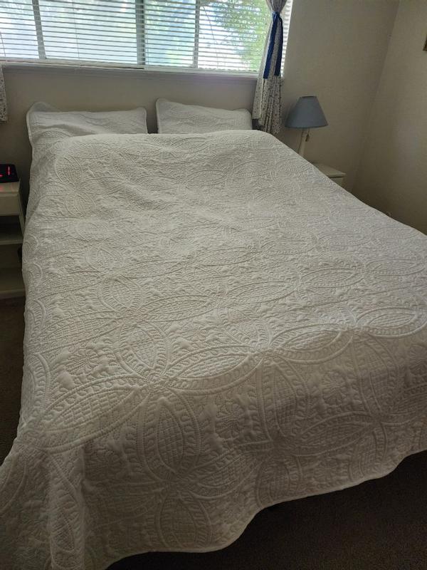 I received white instead of the sage green! The quilt is nicely styled. It is not as comfortable as I thought it would be. Very lightweight. The pillow shams fit my pillows perfectly. Overall, it is not terrible