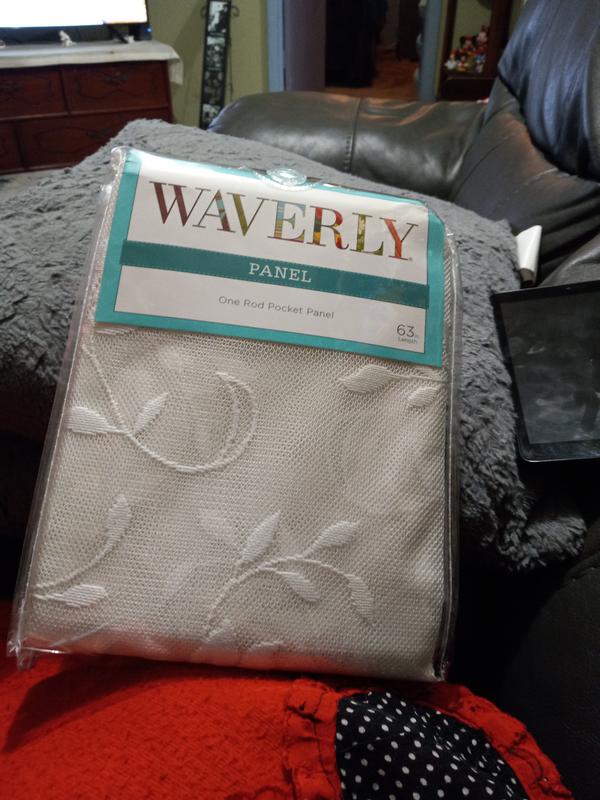 I wanted something for my sunporch door that softened the sunlight but would still be able to see outside and this Waverly Sherry lace panel is perfect! The nosey husky can see thru the delicate "holes" without using her hairy head to move the linen panel I did have hanging there, and the bright afternoon sunlight isn't heating up the room. Right out of the package what little wrinkles and fold lines disappeared with a quick tumble in the dryer with a fabric softener sheet to keep static(and husky hair!) free. Slipped the sash rod easily through the pocket without snags and hung it right up beautifully without effort. The scalloped bottom edge gives it a fluffy billowing soft look that really feels relaxing but still elegant in a way. Transitioning from modern farmhouse to a more boho look this panel fits the in-between style my not yet completed living room has, the creamy white with large botanical floral print is quite beautiful and multifunctional with any decor and could easily be more formalized with side drapes or a fancy cornice. For me I'm very pleased with the less formal panel just hanging all by itself showing off the lace print and pretty bottom, and the dog is happy to watch the squirrels and other critters without getting yelled at for leaving her hair all over my curtains lol.