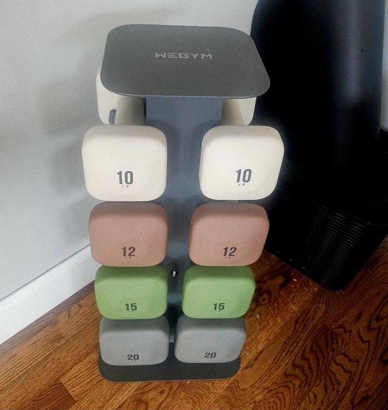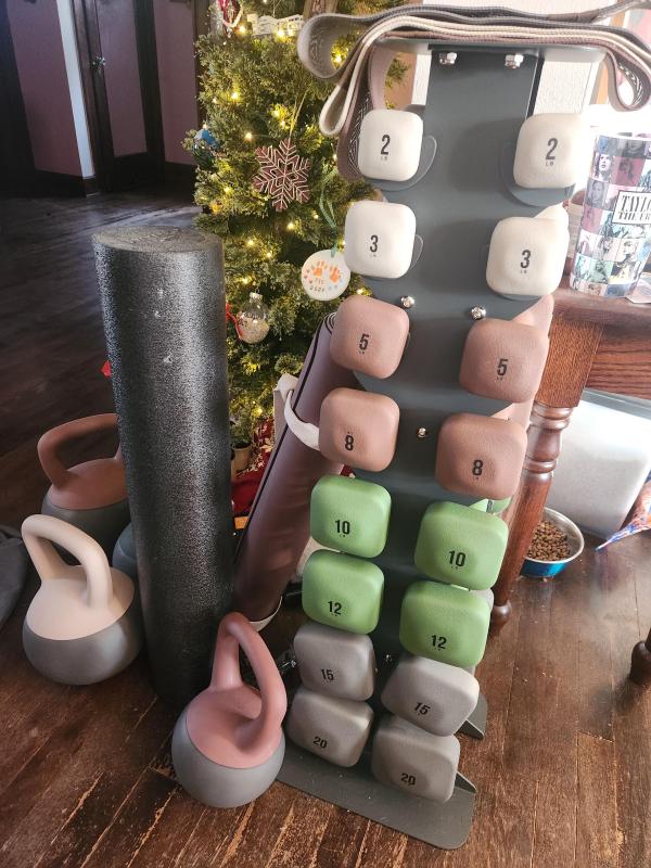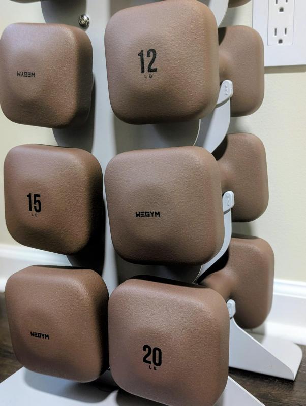 This dumbbell set and rack is not only gorgeous , but comfortable , easy to use, and so well made ! The organization and beauty of these weights and rack is an elevated addition to our home gym !