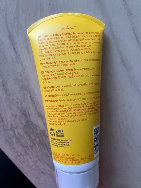Calendula Shampoo & Body wash - vegan product which is so soft on the children’s skin. love this product and will purchase again☺️ used on cradle cap and worked well.