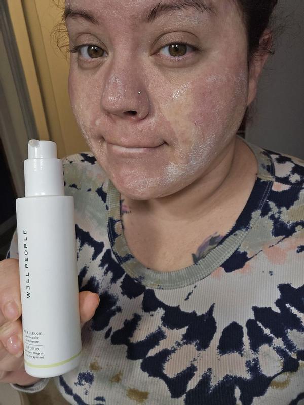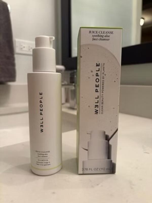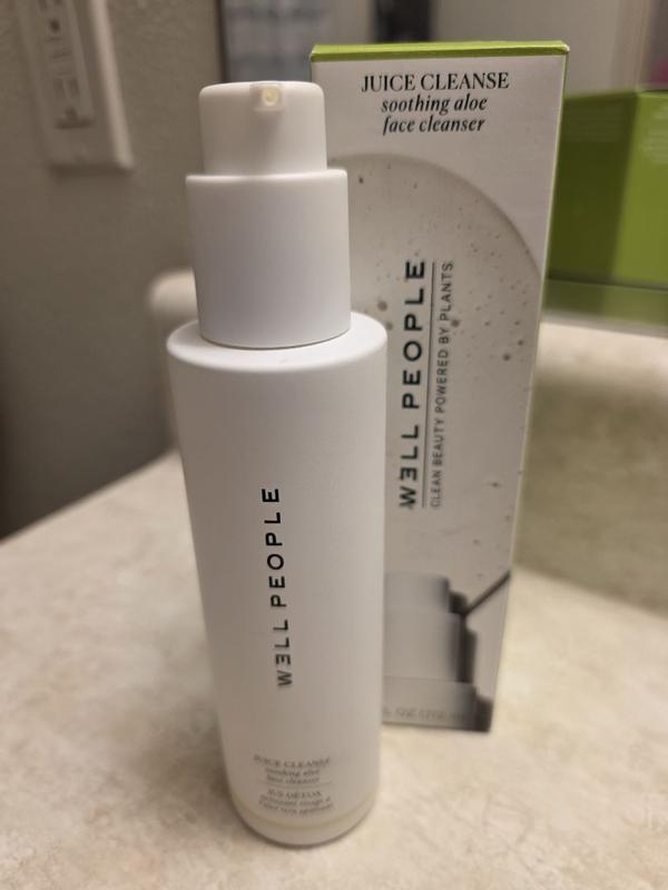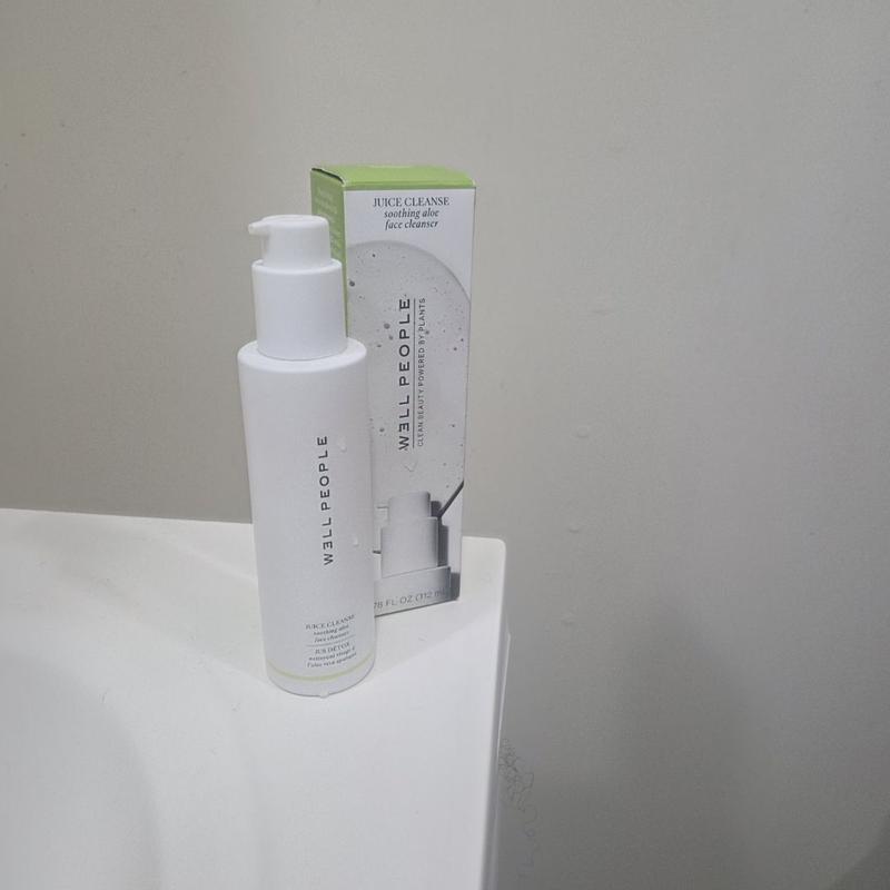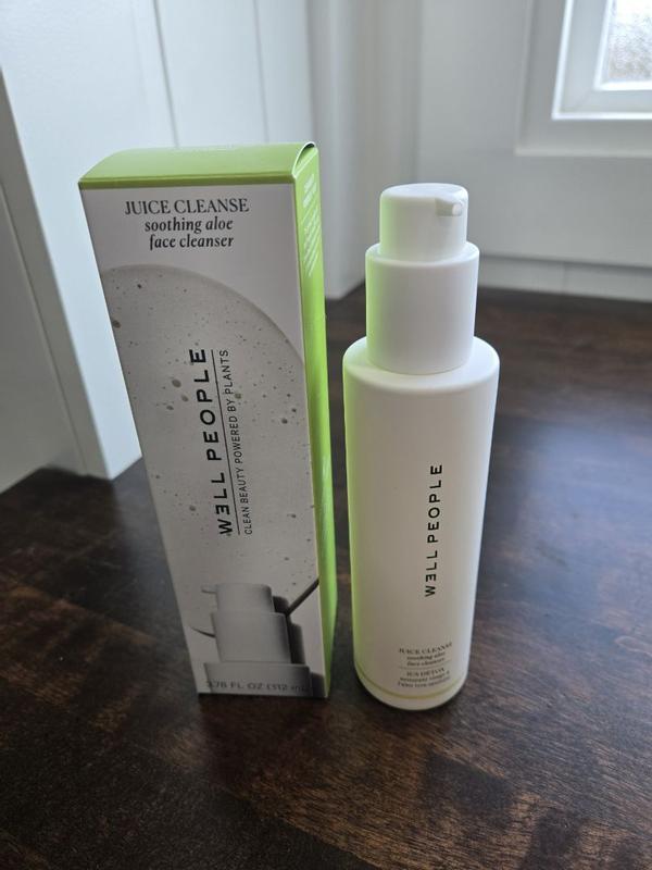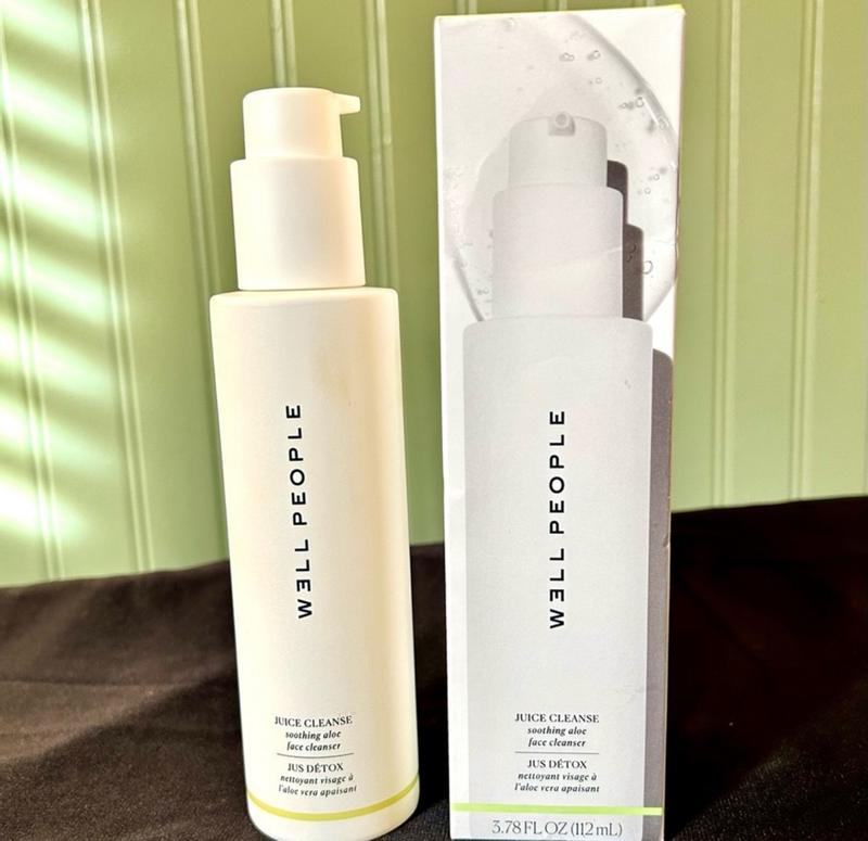 Well People Juice Cleanse facial cleanser is a game-changer! This vegan, plant-based cleanser is cruelty-free and packed with aloe, geranium oil, and organic broccoli seed oil. It has a light, floral/earthy scent and glides on effortlessly, leaving my skin feeling vibrant, clean, and refreshed. I firmly recommend it for a radiant glow!
