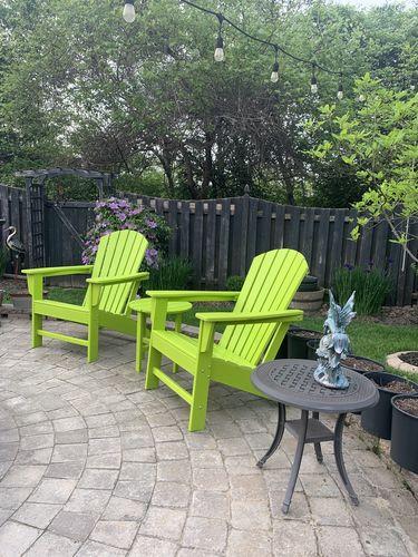 I love this set! Very heavy and well made. I chose dark green for my redwood porch. I also like the style as some Adirondack Chairs you feel like you are sitting on the ground. This style there is good support at the knees.