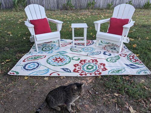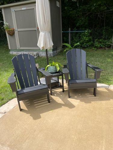 I am very pleased with this Adirondack set! Easy to put together provided you pay attention to the directions. And the price was terrific considering how expensive I’ve seen these elsewhere.