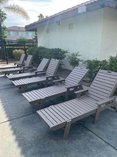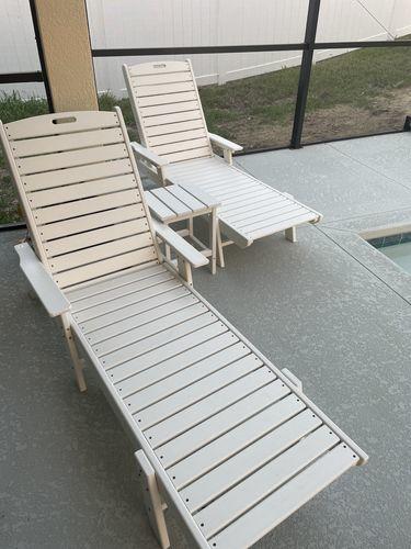 Lounge chairs are sturdy and looks good once it is put together. This is a two person job and you need elbow grease to put this together.