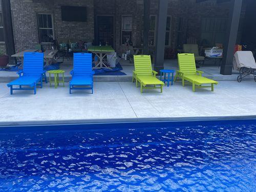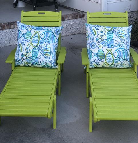 I purchased these chaise lounges in turquoise. The assembly instructions are easy to follow and straight forward. Shipping was fast and arrived within a week. The product is made of high-quality materials and is heavy so that it won't blow off the patio and into the pool. Can't wait to show it off to family and friends. Thus far, I have had no negative issues. This company has proven to be a winner.