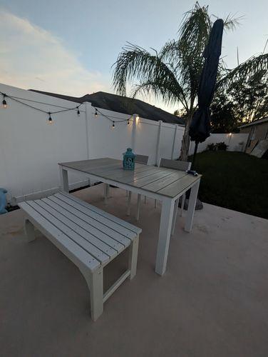 Perfect for my patio! Easy to assemble, very comfortable and sturdy. Won't blow away in the wind. Matches my chairs from Costaelm.