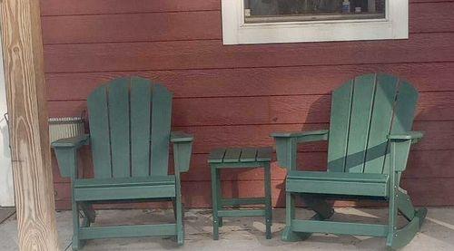 Purchased this set of 2 rockers and table. Beautiful color, easy to assemble and very durable. I have gotten so many compliments!!!!