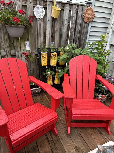 Great chaitrs and easy to assemble. Have been enjoying now for weeks. They go great in my front yard with the two traditional Adirondacks.