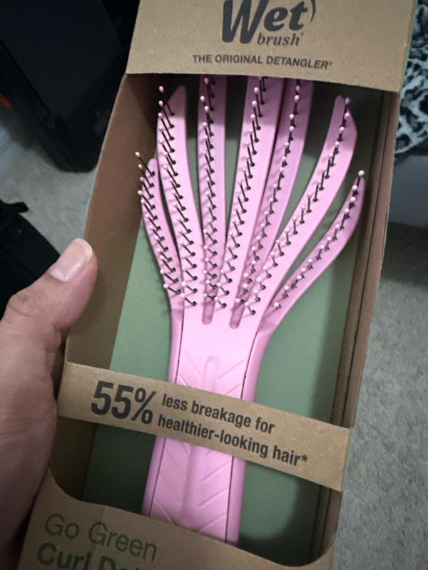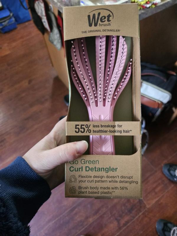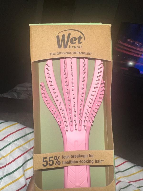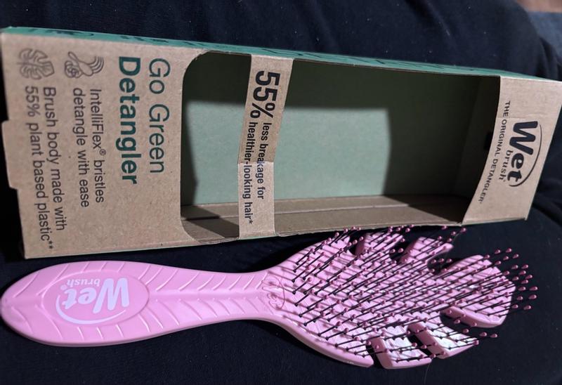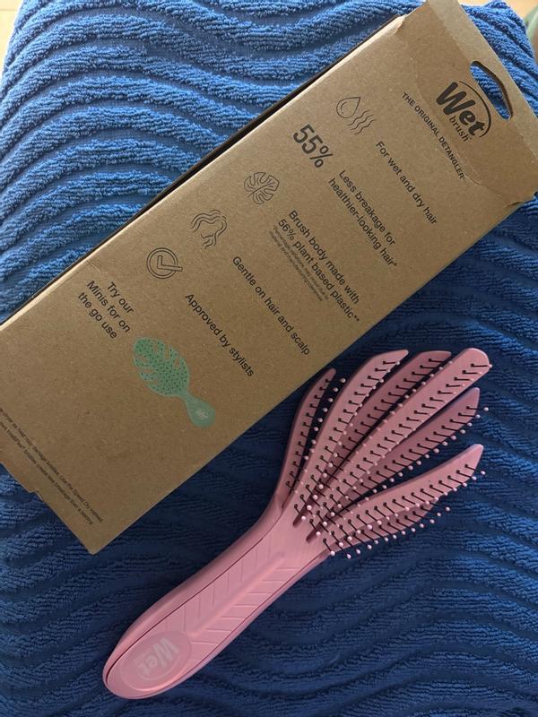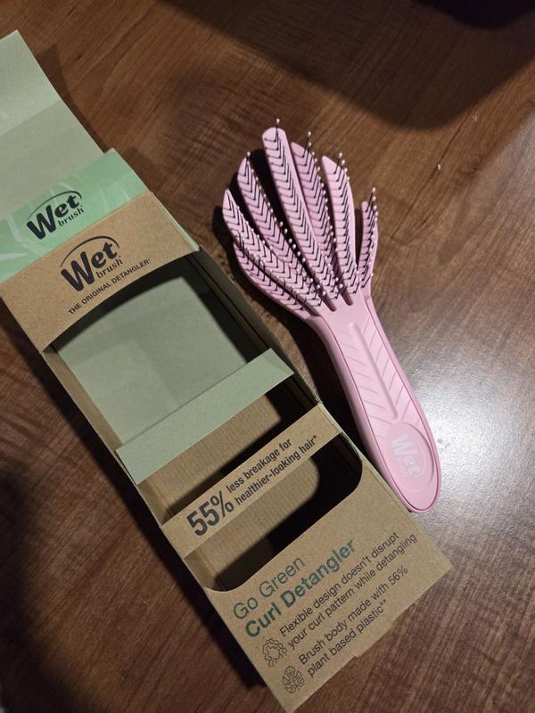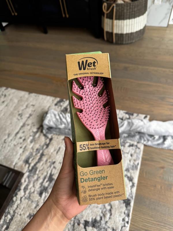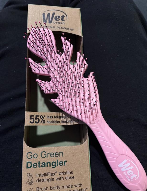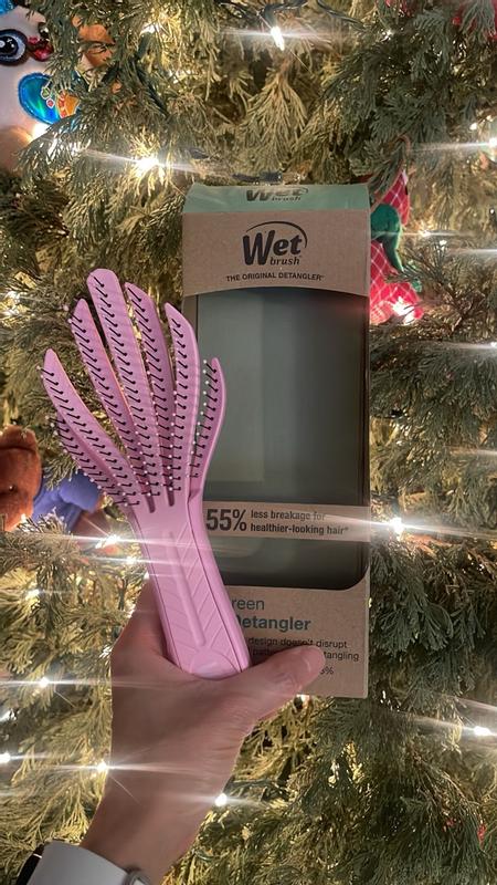 Wet brush, the original detangler is gentle on hair and scalp and great for wet or dry hair. I love that the body is made with 56% plant-based plastic!