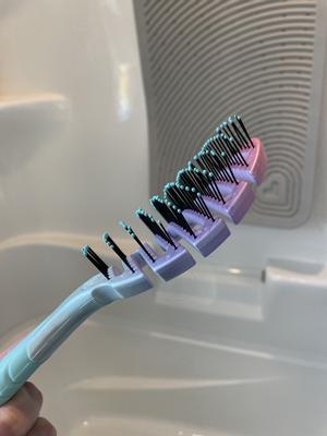 I have owned many hair brushes in the past, but none like this one. I love the flexibility in its design, which angles itself with every brush move. This helps to not cause too much pressure on either our hair or scalp!