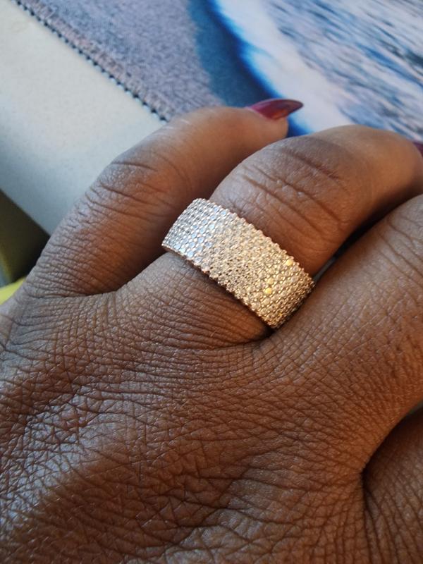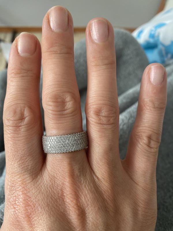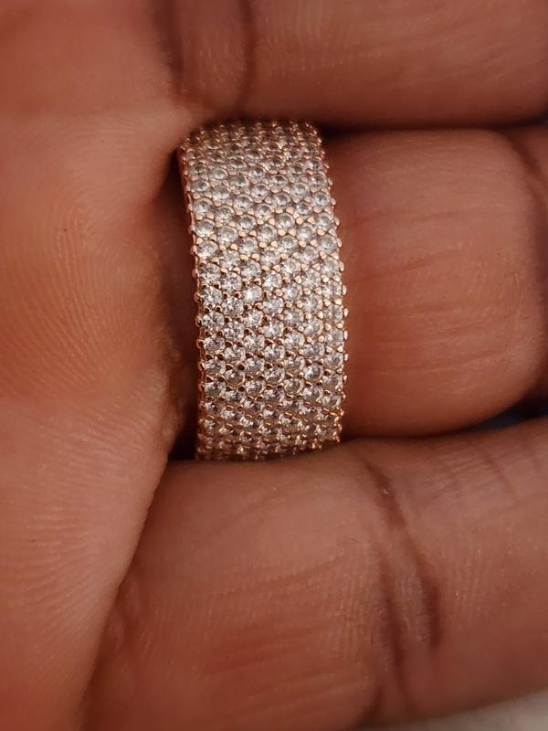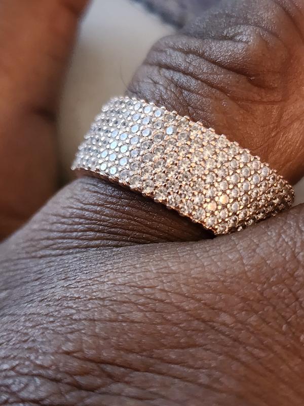 White Cubic Zirconia Micropave Multi Row Eternity Band in 14K Rose, 14K Yellow, Black or Rhodium Plated Sterling Silver