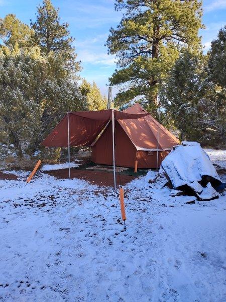We bought the 13' for hot tent camping in the winter. It comfortably fits two adults on cots, two large dogs and a wood stove. We have used it for over 3 years now and been in high winds (60+ mph), snow, rain and sub zero temperatures. Every experience was completely comfortable and low stress. Setup is relatively quick and easy. Simple enough for just one person to do the job. And the quality has us believing this tent will become a family heirloom. Everywhere we have been we are the envy of other campers. If you are considering this tent, do your self a favor and just do it. Our only regret is that we didn't get ours sooner.