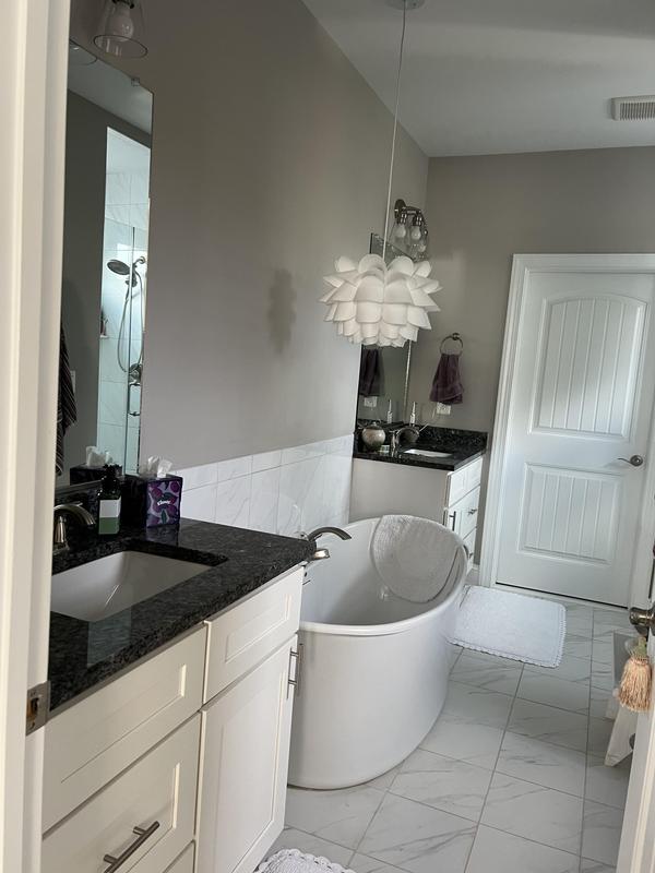 I love the form of this chandelier. It's appealing, easy to clean, and just looks nice in my large bathroom area. It's also reasonably priced.