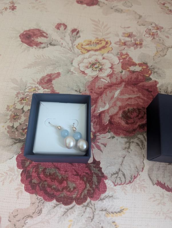I really wanted to love these earrings, the vibrant aquamarine looked beautiful in the picture. The color is so light there was not much difference between the pearl and the stone. The gold was very thin as well.