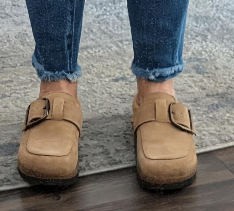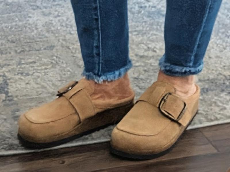 Perfect pair of clogs! The big buckle detail, great fit, and style make them a fantastic addition to my wardrobe. True to size.