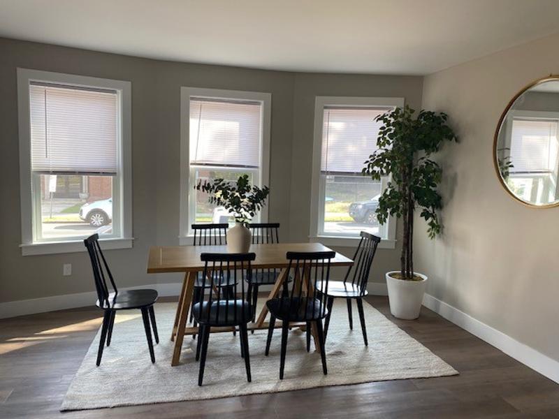 Put the electronic devices down and gather your family and friends around this farmhouse-style dining table for good food and good old-fashioned conversation. The handsome table rests on a trestle-style base and features an attractive V-grooved border on the top. It’s constructed of hardwood solids and birch veneers, with a lightly distressed dark carbon finish.