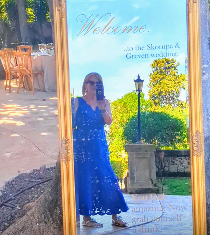 I searched for a midi evening gown for my petite 5 foot frame and this beauty came up. The cobalt blue is gorgeous and the laser cut detail is stunning. The material has a stretch to it so it's easy to move around and sit in. It falls right above my ankles so no alterations are needed. Highly recommend.