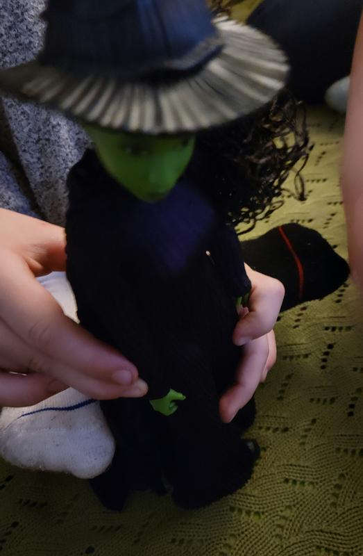 I gave this to my 4-year-old granddaughter, and immediately her excitement was palpable: “it’s Elsa when she flies in the sky!” Now, that may not actually be true given the doll is based on the movie character Elphaba rather than the original Broadway cast member who voiced a certain queen, but that’s how realistic this doll was; it was immediately recognizable. (Maybe that has to do with the green skin, which admittedly is a bit of a giveaway, but still, even a four-year-old who had never seen the movie nor show knew who it was meant to be, and that says something). Since Elphaba was received, she’s been found hanging out with a variety of other fun characters – whether that’s with a doll of the aforementioned queen or other similar princess-based characters. Elphaba is also often found hovering in the sky singing about defying gravity as she hovers over a castle while the other characters watch from below and converse about how dancing and life, or about how popular she is right now compared to them. (Yes, the aforementioned four-year-old has quite a vivid imagination and also has a knack for song lyrics.) The doll is easily poseable and came with her broom, which certainly helps with reenacting how she defies gravity. She also has her hat given by Galinda (before she became Glinda), so if paired with the G(a)linda doll, they could reenact that most special scene from the movie in the imagination of the little ones! In terms of dislikes, there's nothing so far to really 'dislike' about her other than maybe that it would be nice if she sang one of her most well-known songs, like Defying Gravity or The Wizard and I?