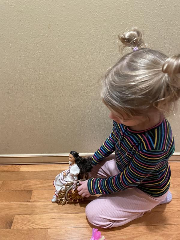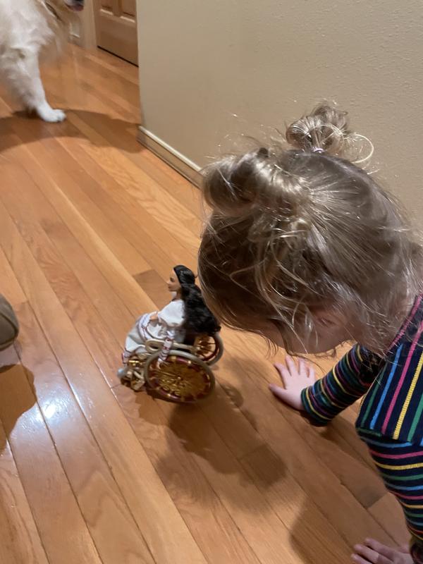 My daughter really enjoyed the detail this doll had. She is so excited to see the movie, and the wheelchair is truly a work of art. The details on the dress and all the filigree the wheelchair has is beautiful.