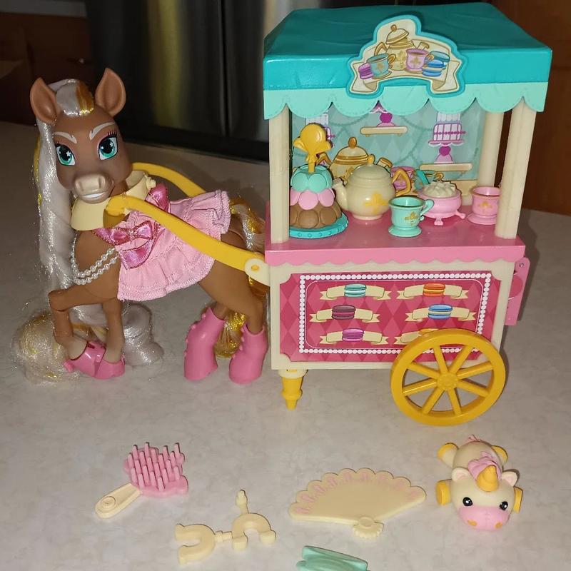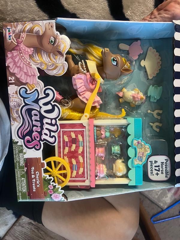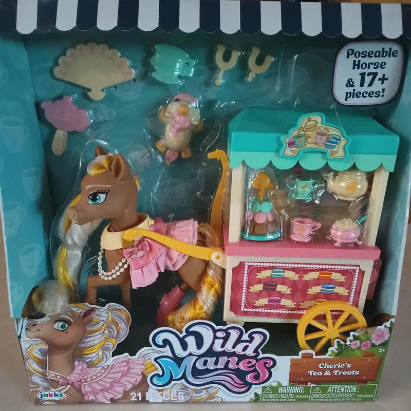 The Wild Manes Cherie's Gold Tea & Treats Cart Playset is perfect for imaginative play,encourages creative play and storytelling the accessory’s are so beautiful and the playset guarantees a great play time. It’s perfect for 3+ years old kids because it’s comes with little pieces. It’s a great gift for tose who love horses and imaginative games