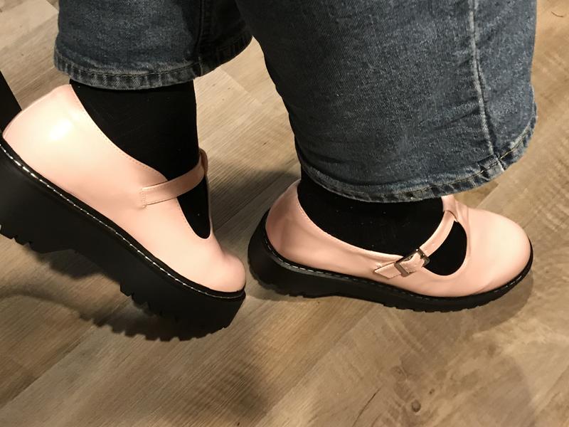 I love the style of these mary janes. The platform is tall but not roll-your-ankle-every-step tall. One odd this is the the buckle is secured by an elastic, so when you're breaking them in, the back end flops like flip flops. That stopped for me the second time I wore them but it make take longer for others. I think they are so cute, I love them.