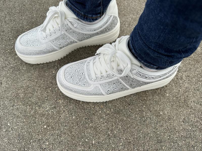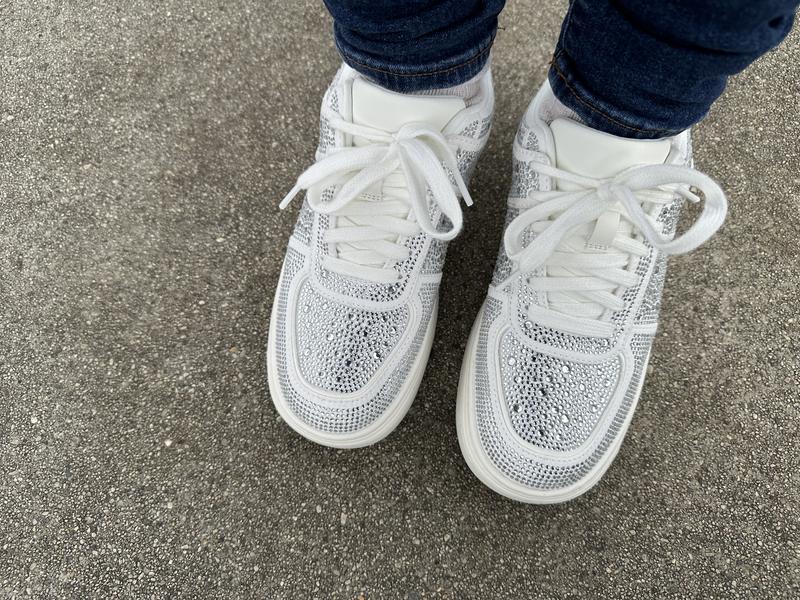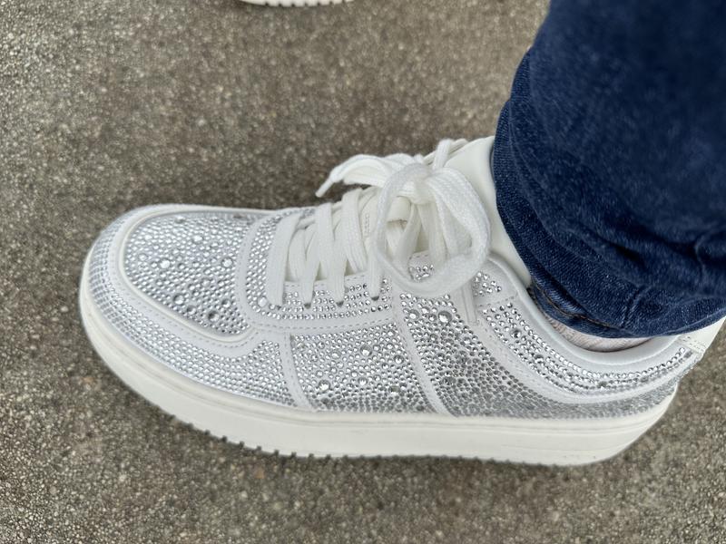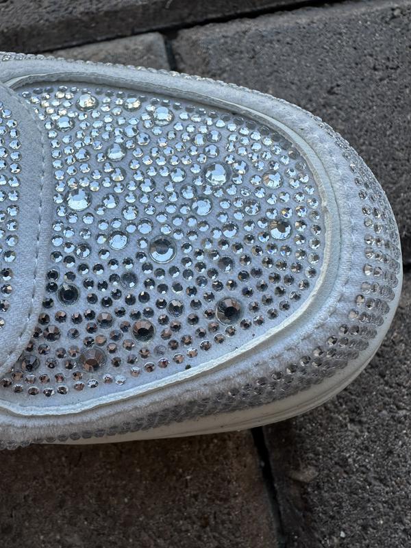 They are comfortable a bit tight at the toes, super sparkly the picture doesn’t do them justice and they’re like little diamonds on your feet! They’re nice and spongey on the inside but the like mold where the sole and the top of the shoe is a bit hard and will probably need to break in (I hope does grow softer they’re a bit stiff right now which I don’t want to get blisters) easily slide on and off when kept tied. I recommend them but they do need to be worn in a little. GORGEOUS otherwise!