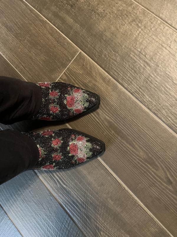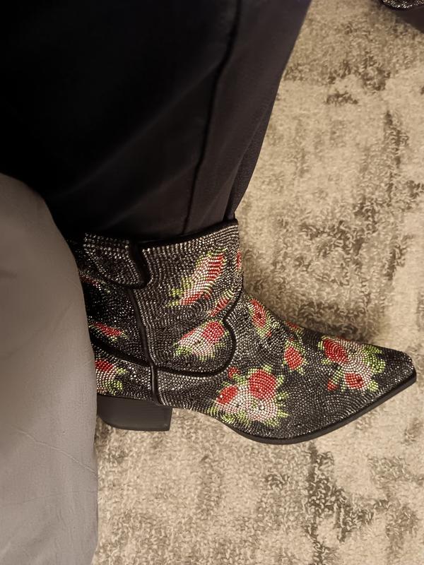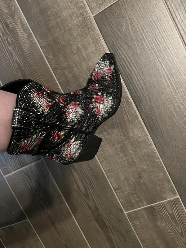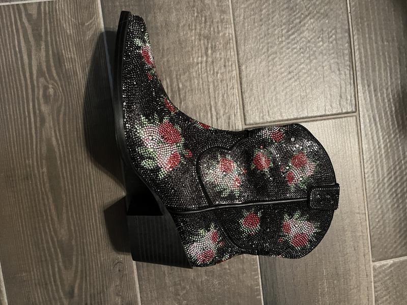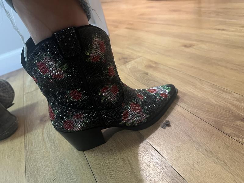Instantly I knew I had to purchase these awesome cowgirl booties! They are loaded with glitter and were the perfect accessory for the KY Derby party this year. Everyone noticed and loved them. I was surprised how comfortable they were to wear all night dancing! They are true to size. I wear a 7 medium and they fit me perfectly. I would purchase these again.