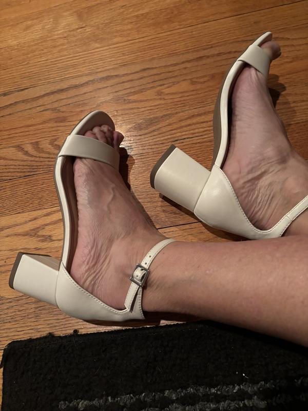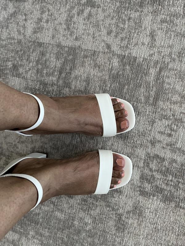 These are a pair of casual/dressy block heels in off white. Perfect for summer wear. Block heels make it comfortable for all day wear. I would feel more comfortable if the back ankle area hit a little lower on the ankle along with the strap. (If that makes sense) It’s just personal preference. Other than that the shoes are great summer staples that can be warn with different outfits.