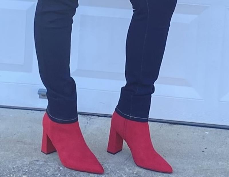I've always wanted red boots, and finally found just the right pair for my fantasy! These lace-up boots fit as expected, are well-made, comfortable to wear, and work with jeans, pants, dresses, skirts, etc. The heel is a moderate height and width, which makes walking easy. I'm over the moon!!