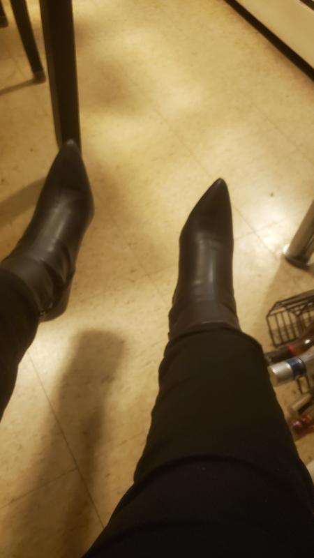 These boots are so so cute! I’ve been on the hunt for a low heel pointed toe boot like this and these were on sale! Love the back color and the pointed toe. The material is soft so even though the toe is pointed, it’s not uncomfortable. And the heel is just perfect. Not too big not too small. I could wear these every day. Just love them so much.