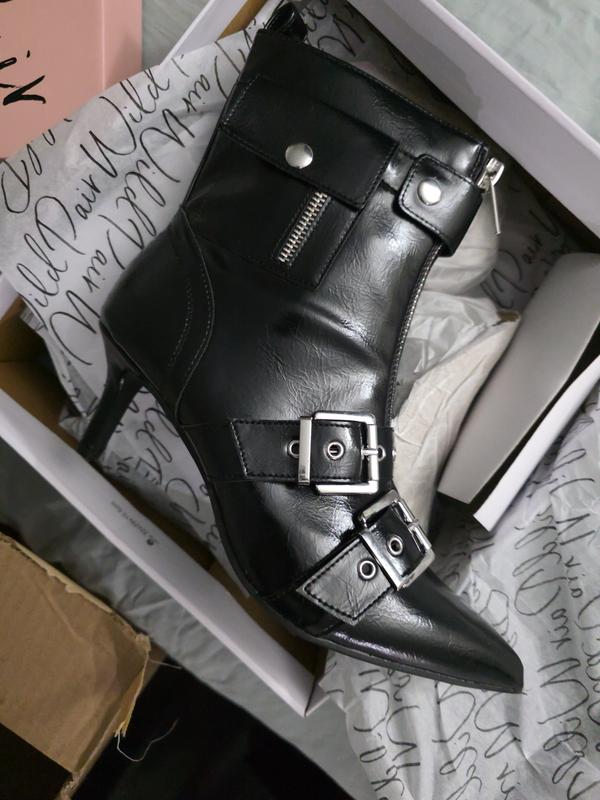 These boots are pretty, but not as pictured. They appear to be a matte blank leather look, but the boots i received were shiny. They could possibly pass as a patent leather look, but unfortunately, they looked too much like garbage bag shiny black.