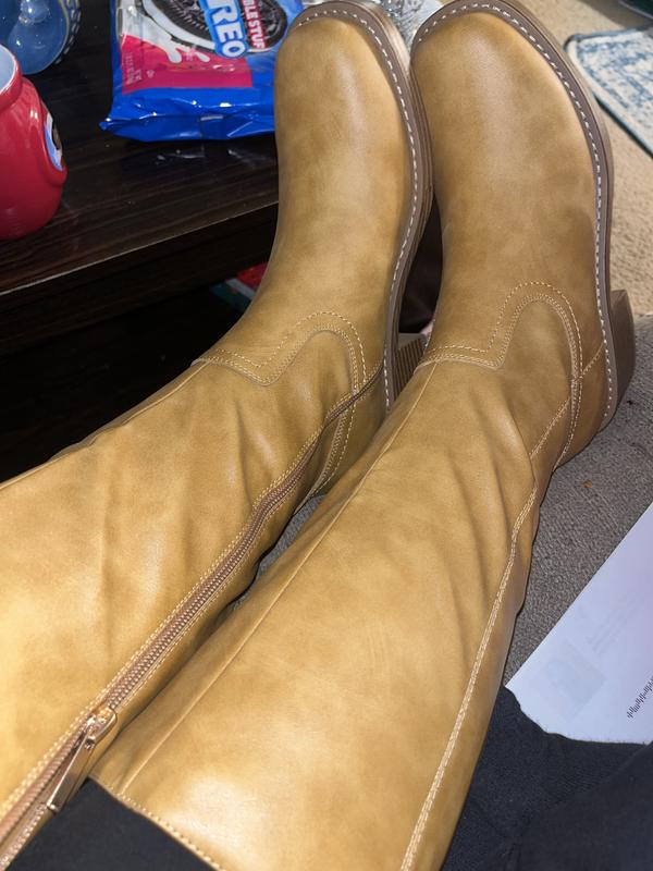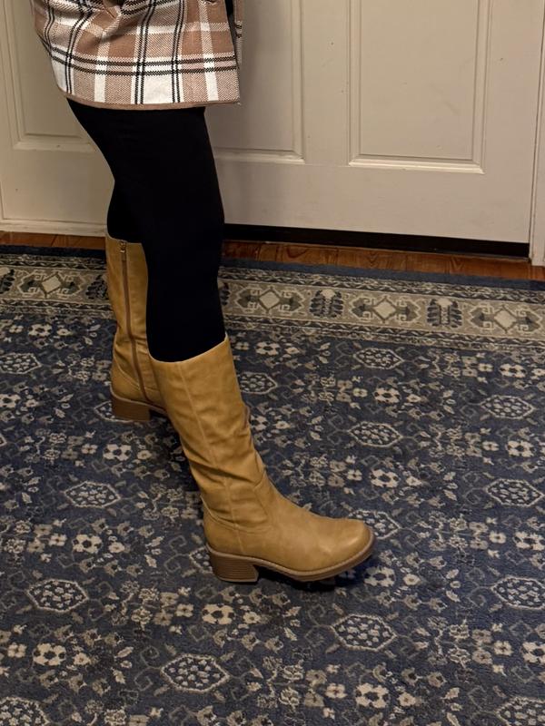 Enjoy enhanced support from these Wild Pair Warblerr tall boots, equipped with a block heel designed to balance style and comfort. The square toe design allows natural movement, and the single sole offers durable traction.