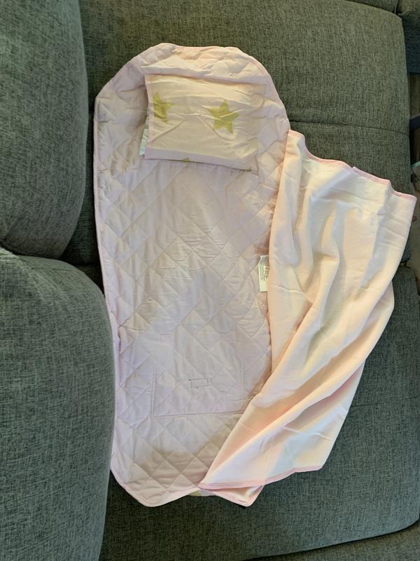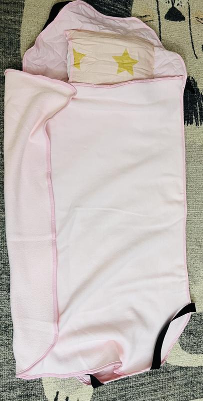 I love this travel stars nap mat. It is made from high quality materials that are soft and it is well made. The attached blanket and pillow keeps your nap essentials all together. The elastic straps makes it attach to a cot with ease for those who use it at a daycare or somewhere with a cot. We used it without a cot and keep it in the car for when we are on the go at baseball games and my daughter loves it. It's great that it is washable and hasn't fallen apart. The color and pattern stays bright and beautiful. It is easy to fold back up too.